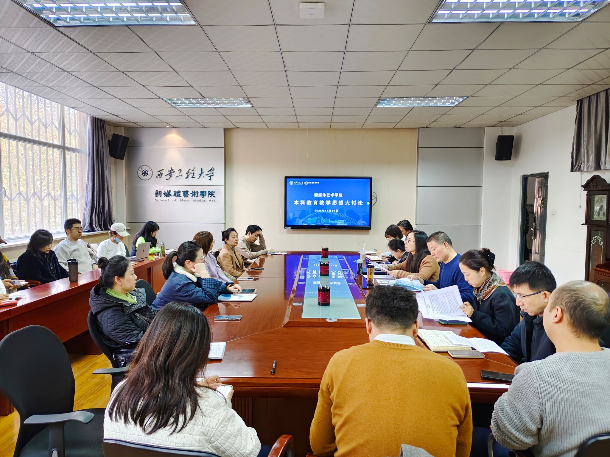 11月19日,新媒体艺术学院组织开展本科教育教学思想大讨论活动。学院党委书记张瑾出席会议并讲话,教学副院长姒晓霞主持会议,各专业教师代表参会。