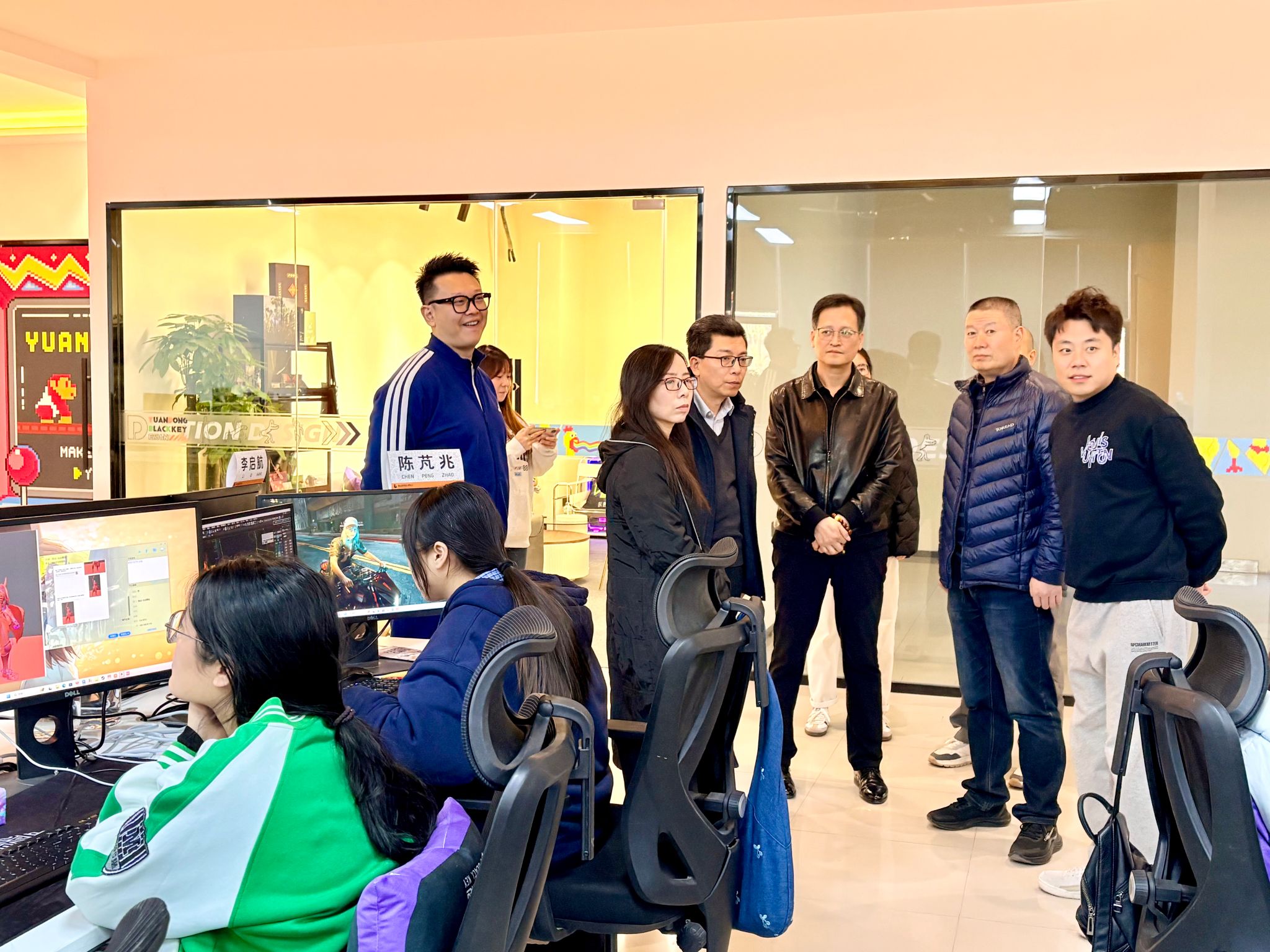 11月27日,新媒体艺术学院党委书记张瑾带队,党委副书记赵文熙、副院长姒晓霞、相关专业负责人等组成检查组,赴西安数字内容产业研究院、西安猿动网络科技有限公司实地检查70余名戏剧影视美术设计专业和动画专业学生的专业实践情况。