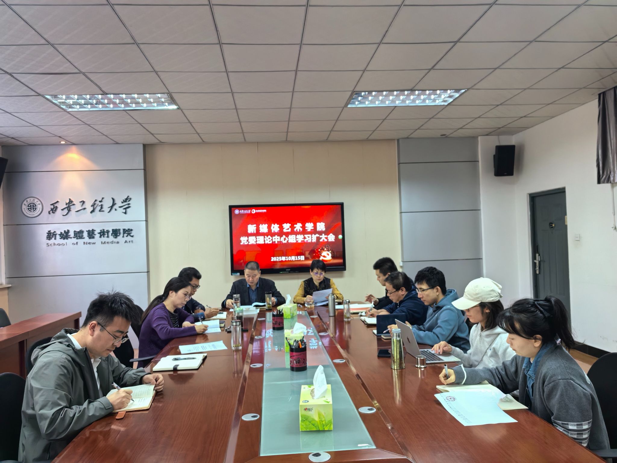 10月15日下午,新媒体艺术学院党委理论学习中心组在金花校区8号楼学院会议室组织开展集体学习。会议由学院党委书记张瑾主持,学院全体班子成员、各支部书记、系部主任参加了学习。