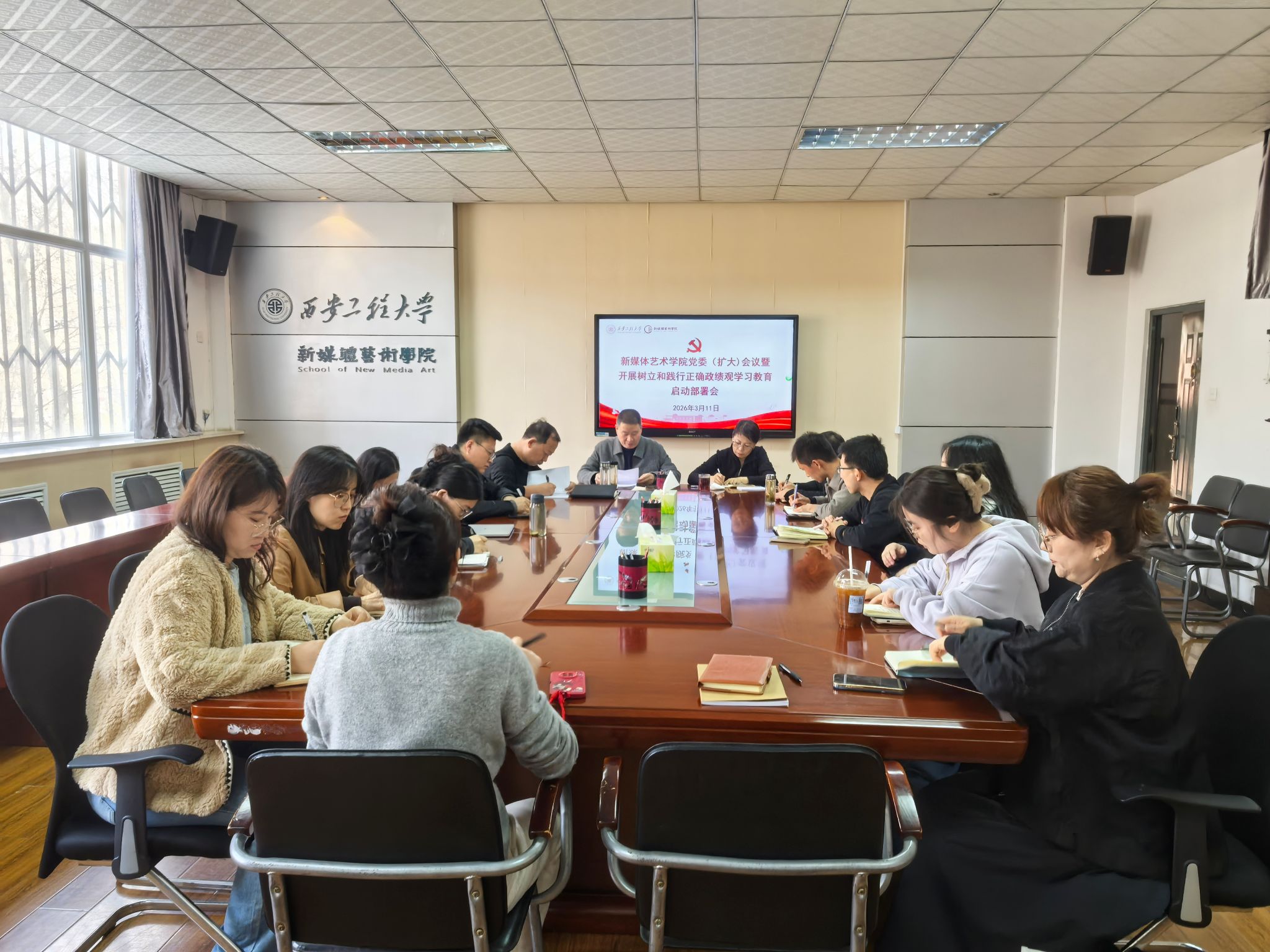 3月11日下午,新媒体艺术学院在金花校区召开党委会议(扩大)暨开展树立和践行正确政绩观学习教育部署启动会,学院党政领导班子、党支部书记、副书记参加会议。会议由学院党委书记张瑾主持。