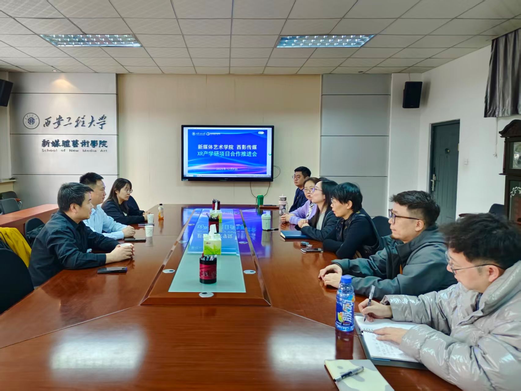 12月9日,新媒体艺术学院与西影传媒在金花校区召开XR产学研项目合作推进会。西影传媒总编室主任程杰等一行三人与新媒体学院院长丛红艳、副院长姒晓霞、各系负责人及实验中心主任进行了交流座谈。