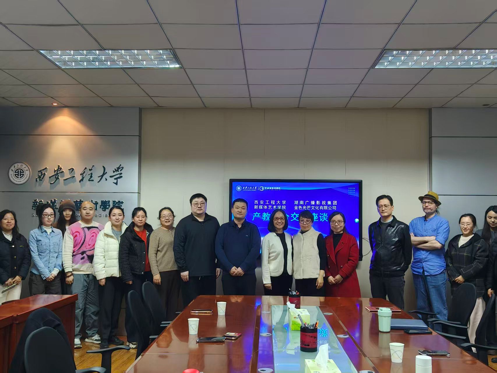 12月12日,新媒体艺术学院举办产教融合专题交流座谈会,特邀湖南广播影视集团金色光芒文化有限公司执行董事、总经理、著名影视制作人何瑾女士与会交流。学院院长丛红艳、副院长姒晓霞、副院长王晨仰及各系主任、骨干教师及青年教师代表参加了座谈,围绕产教融合、协同育人、校企资源对接等议题展开深入研讨。