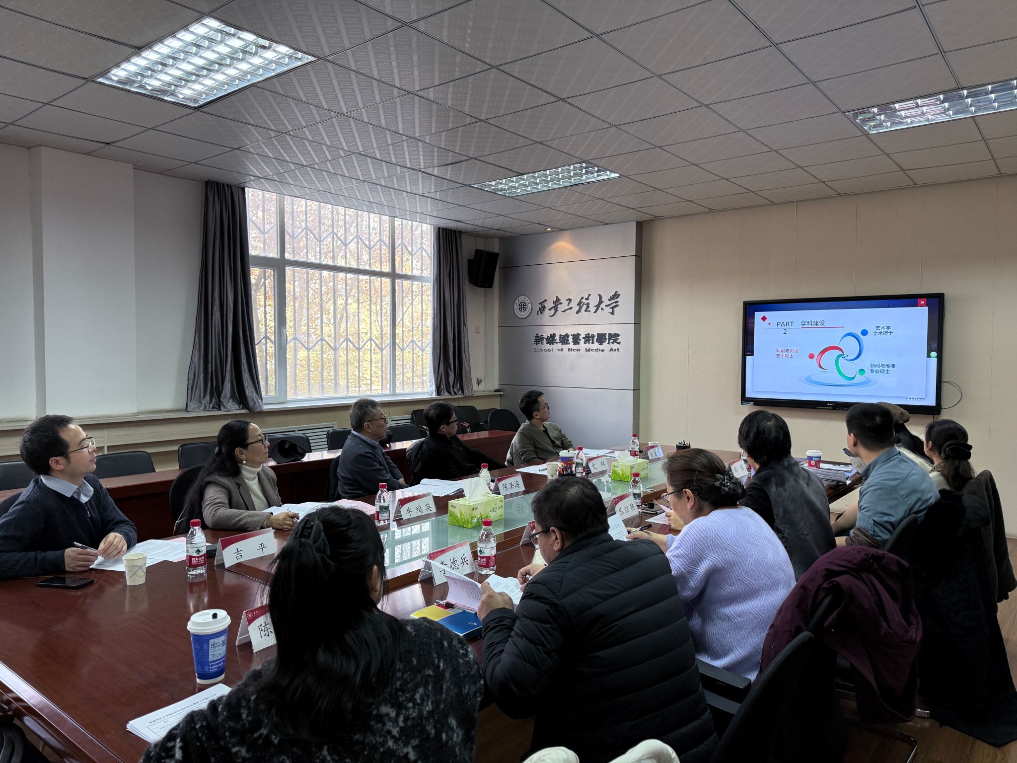 丛红艳围绕学院发展历程、学科架构及人才培养特色,系统介绍了新媒体艺术学院的建设情况,并对艺术学一级学科硕士点、新闻与传播及戏剧与影视专业学位点的建设进展与成果作了详细汇报。王晨仰从学科研究方向凝练、人才培养目标、科研能力训练、实践教学及学位授予等方面汇报了艺术学学科建设情况。